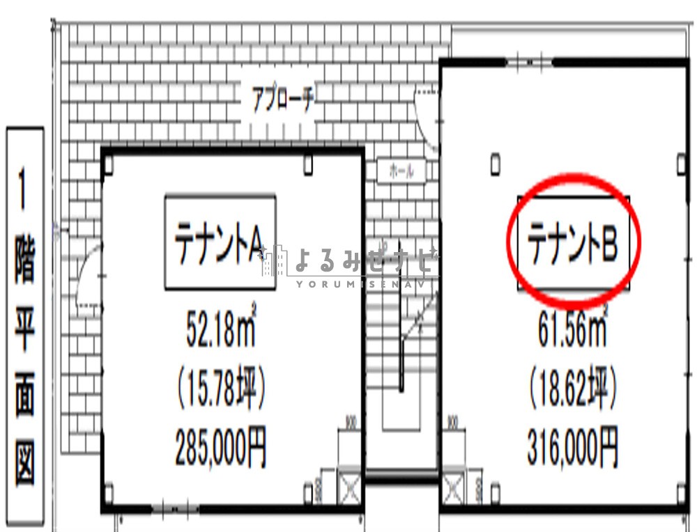 ・敷金業種により増額あり・1フロア2テナント・飲食店可