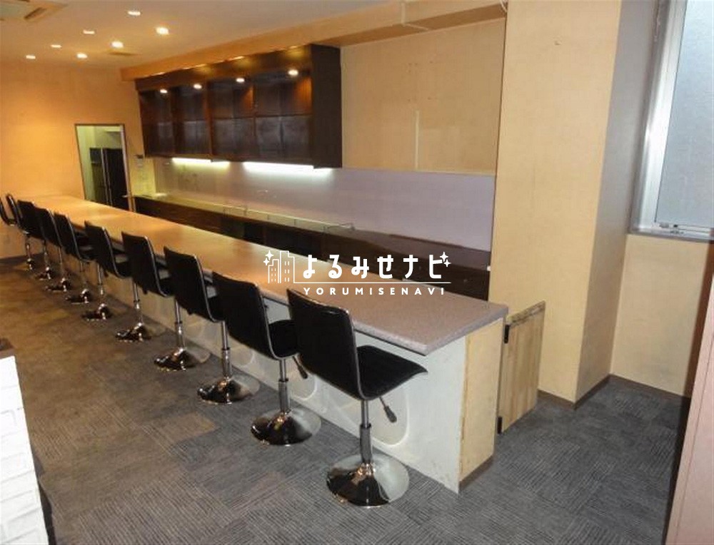 「福島駅」徒歩8分、陣場町の繁華街にあるスナックビルの3階、落ち着いた印象のお部屋です!カウンター有り、ブラックの椅子がおしゃれです!家賃フリーレント1ヵ月