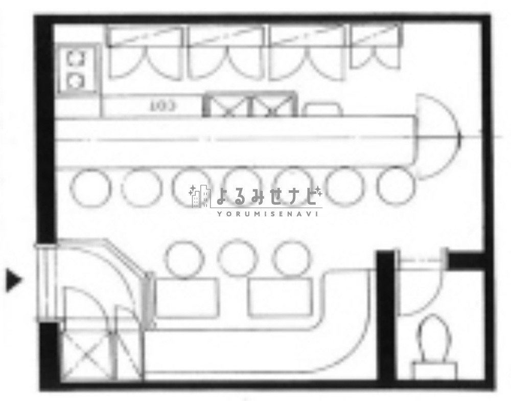 店舗設備はボトル棚・カウンター・椅子・テーブル・台下冷蔵庫・空調・コンロ等